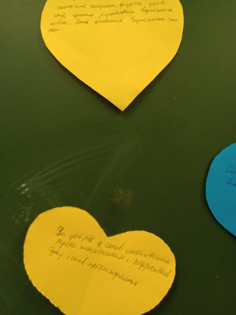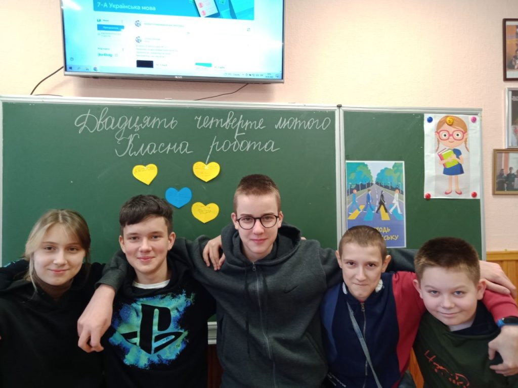 Сьогодні учні та вчителі нашої школи глянули на минулий рік і подумали, що саме у нас змінилось за цей час: хтось знайшов себе у волонтерстві, хтось нарешті перейшов на українську мову, а хтось із нас зрозумів, що як би добре не було за кордоном, та все ж вдома – найкраще. А на коридорах було організовано виставку онлайн-малюнків, які учні нашої школи малювали в перші місяці після повномасштабного вторгнення.