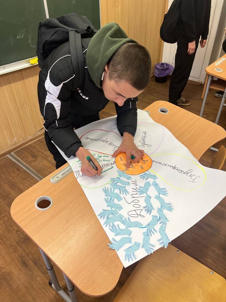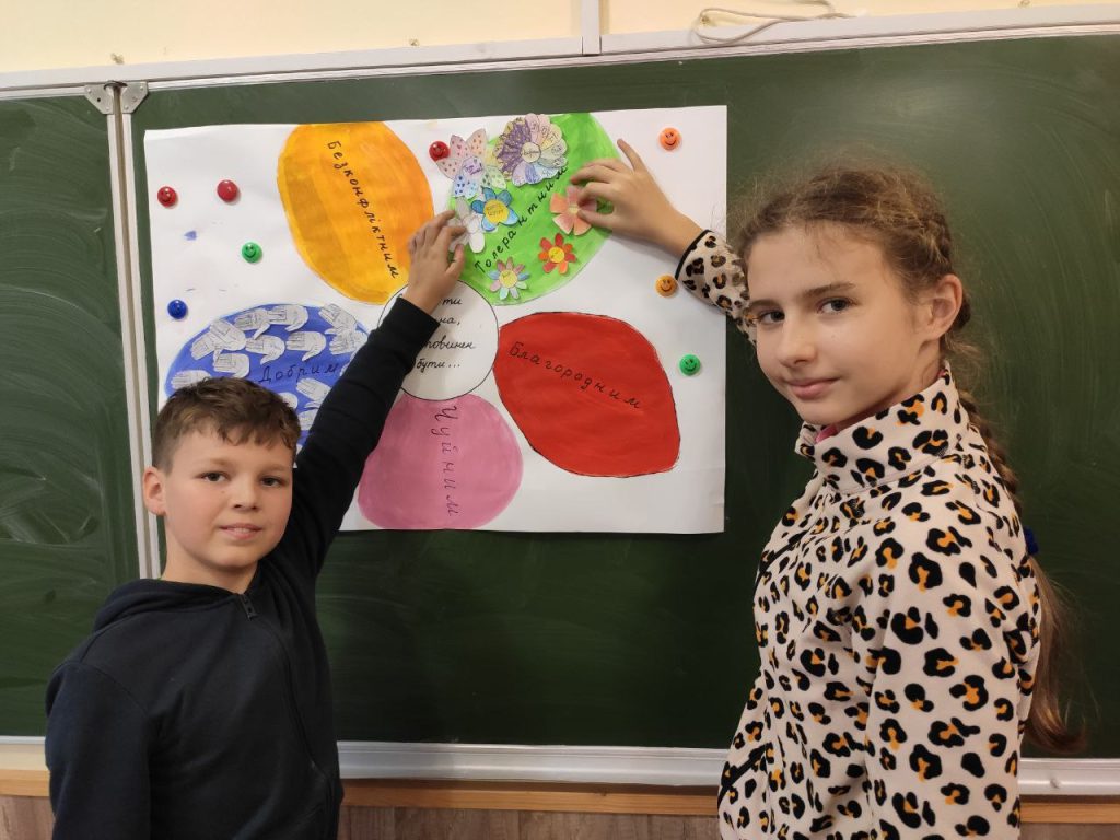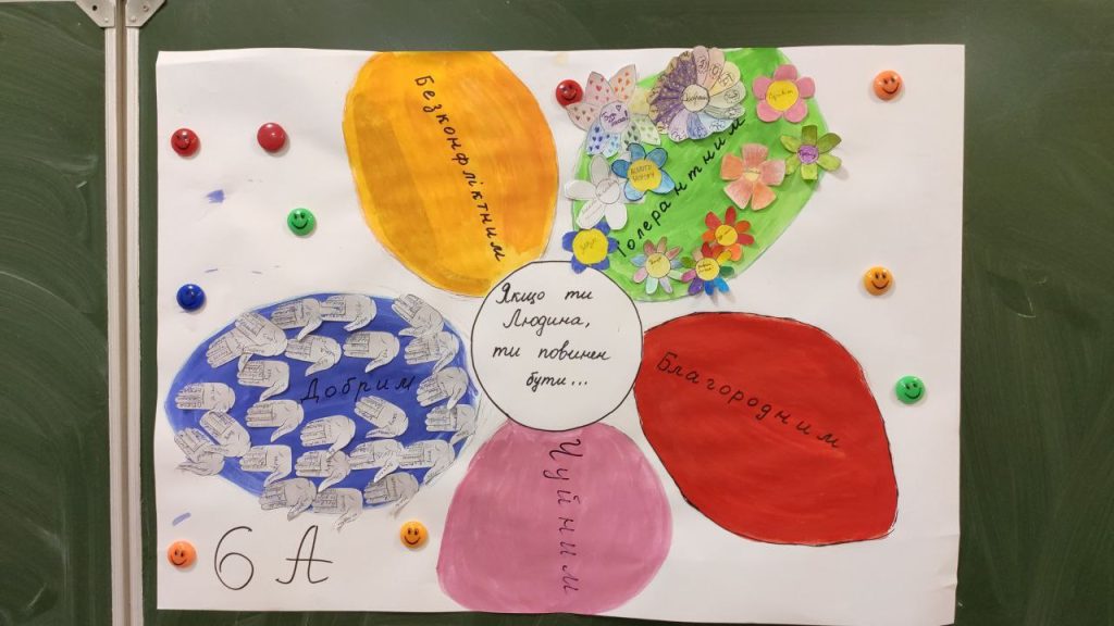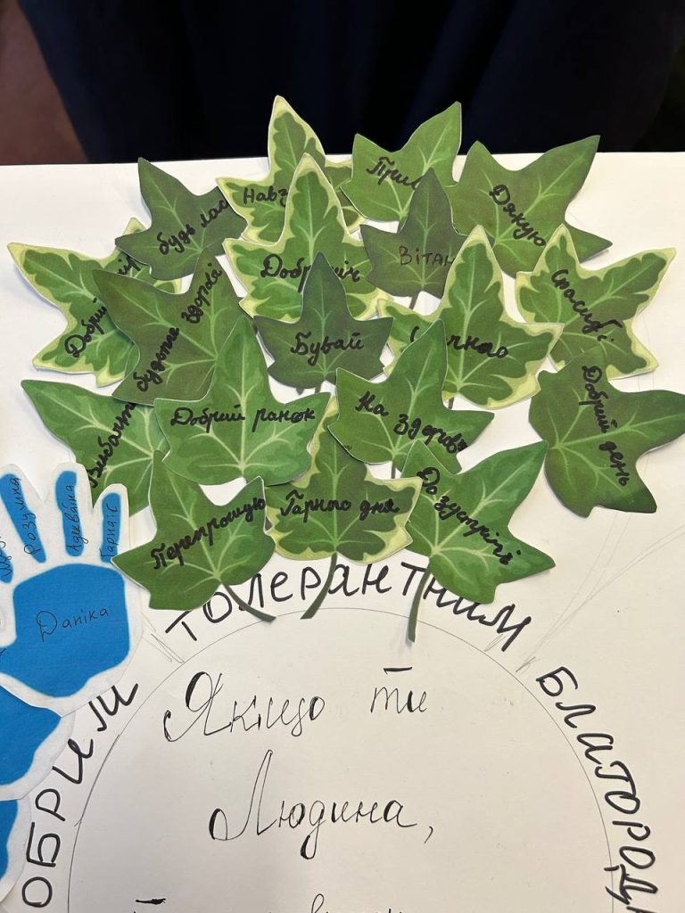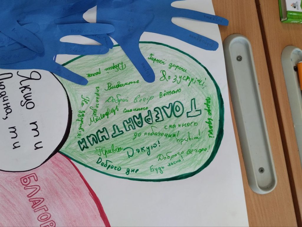 Сьогодні в нашій школі в рамках проведення Тижня толерантності був День ввічливості. Протягом дня учні з усіма поводилися ввічливо, говорили приємні слова а на зеленій пелюстці записували слова ввічливості.