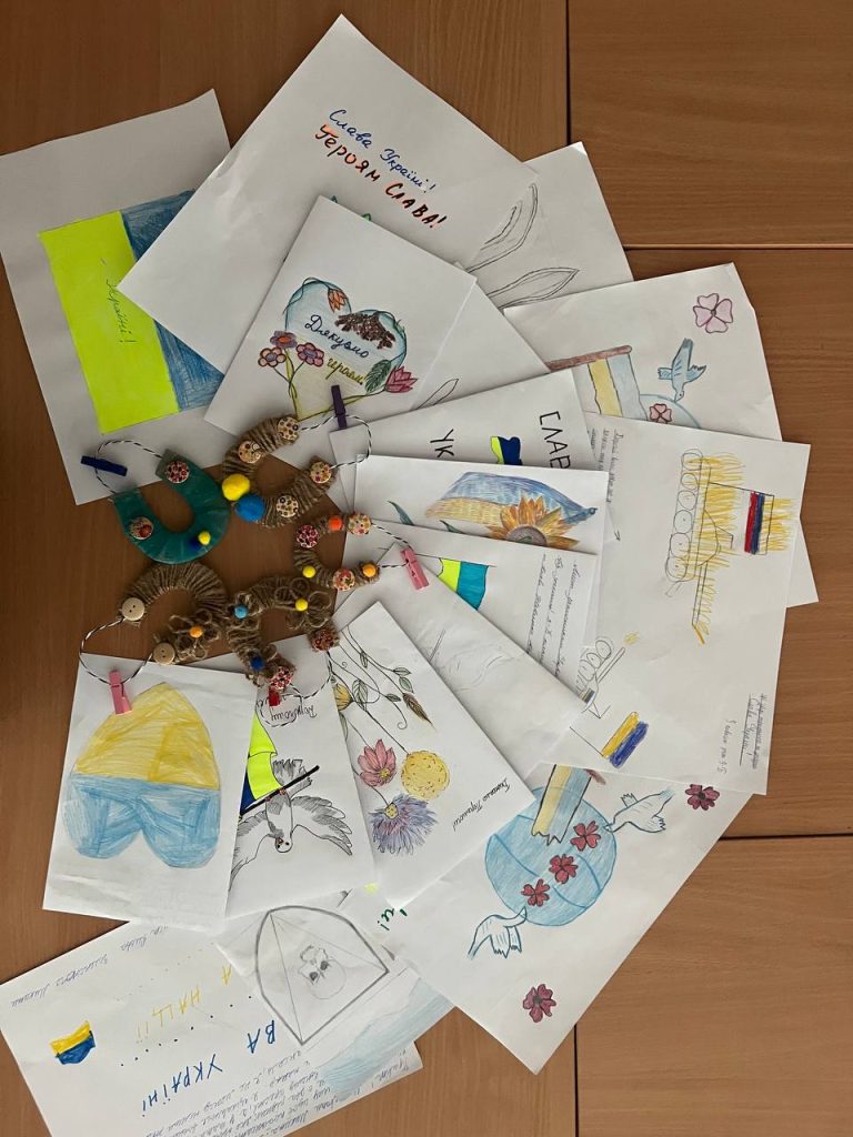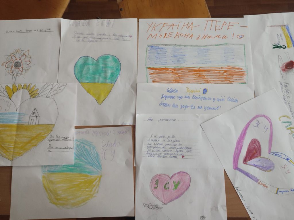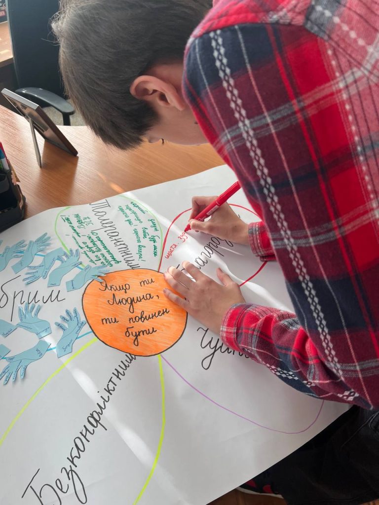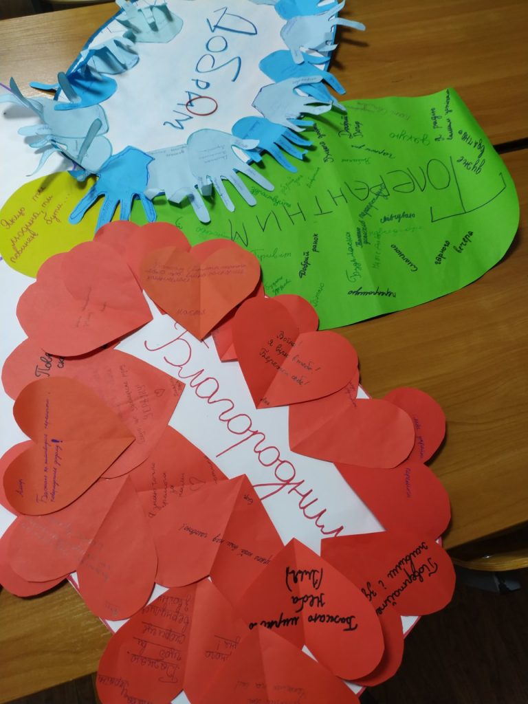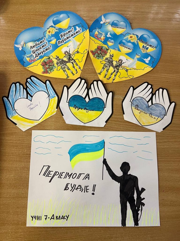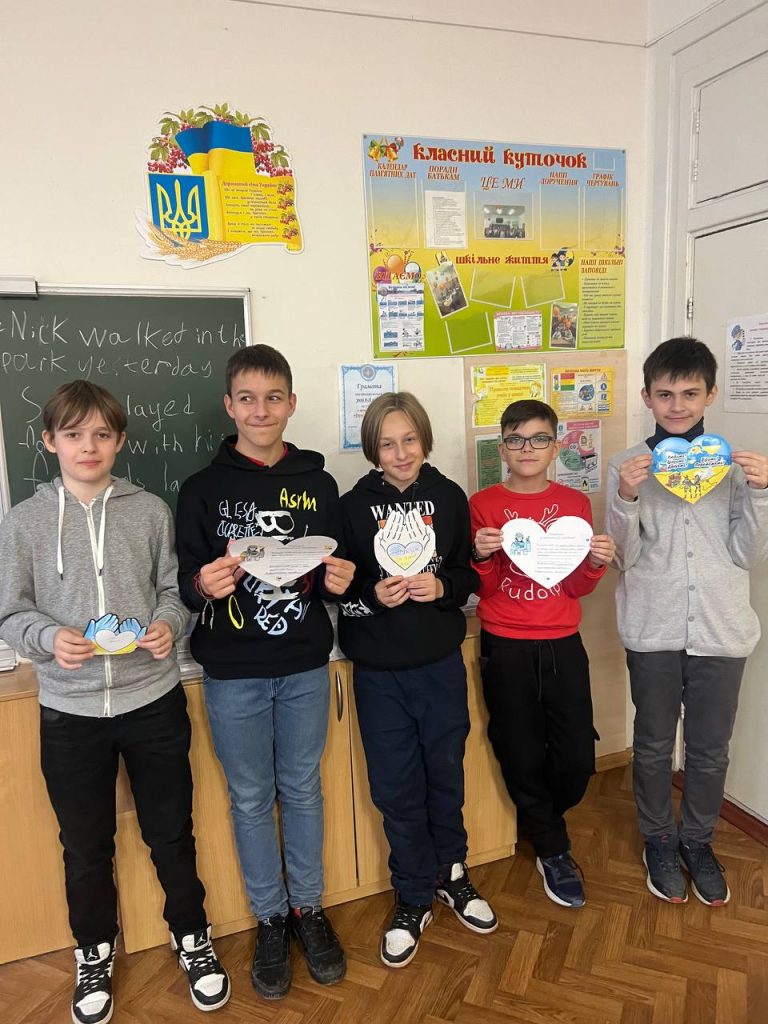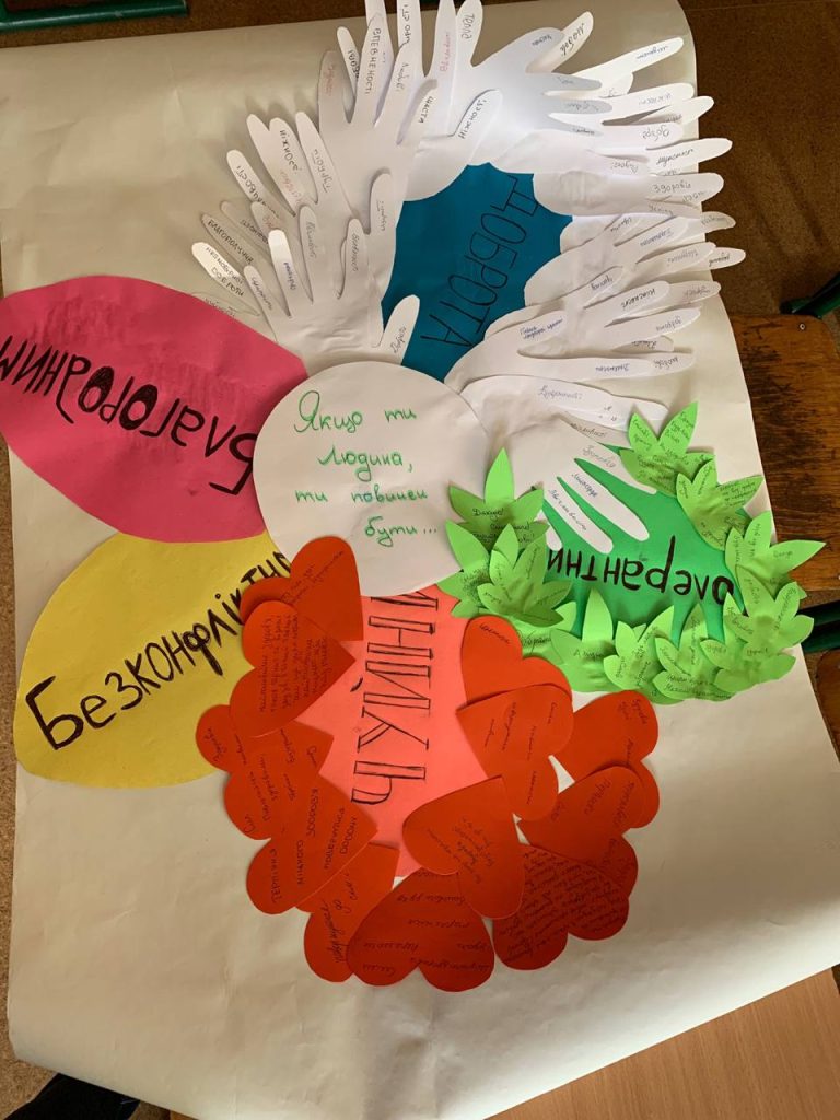 Протягом дня учні створювали малюнки та саморобки для військових, які лікуються в госпіталі. А на червоній пелюстці Квітки толерантності учні писали побажання, які хотіли б передати військовим.