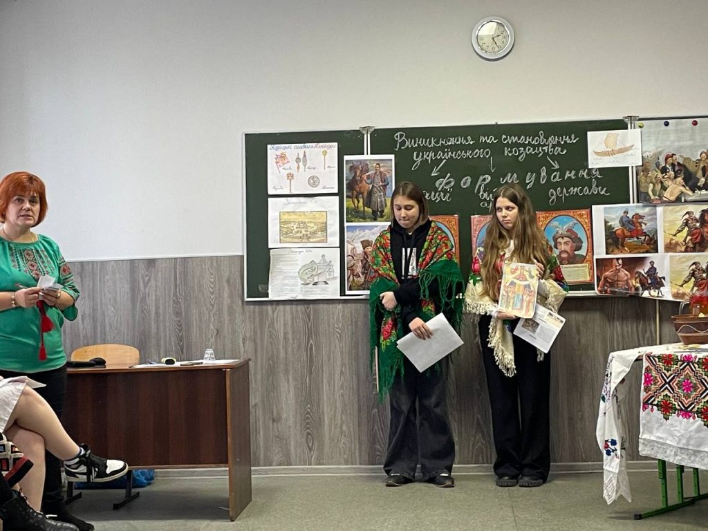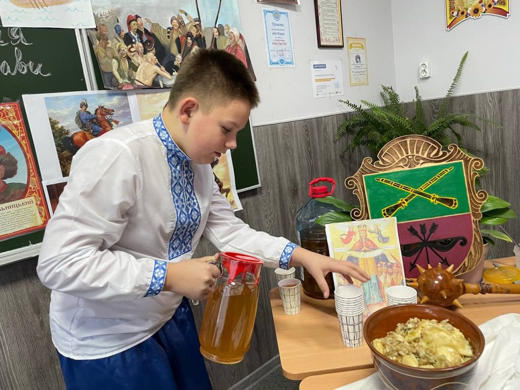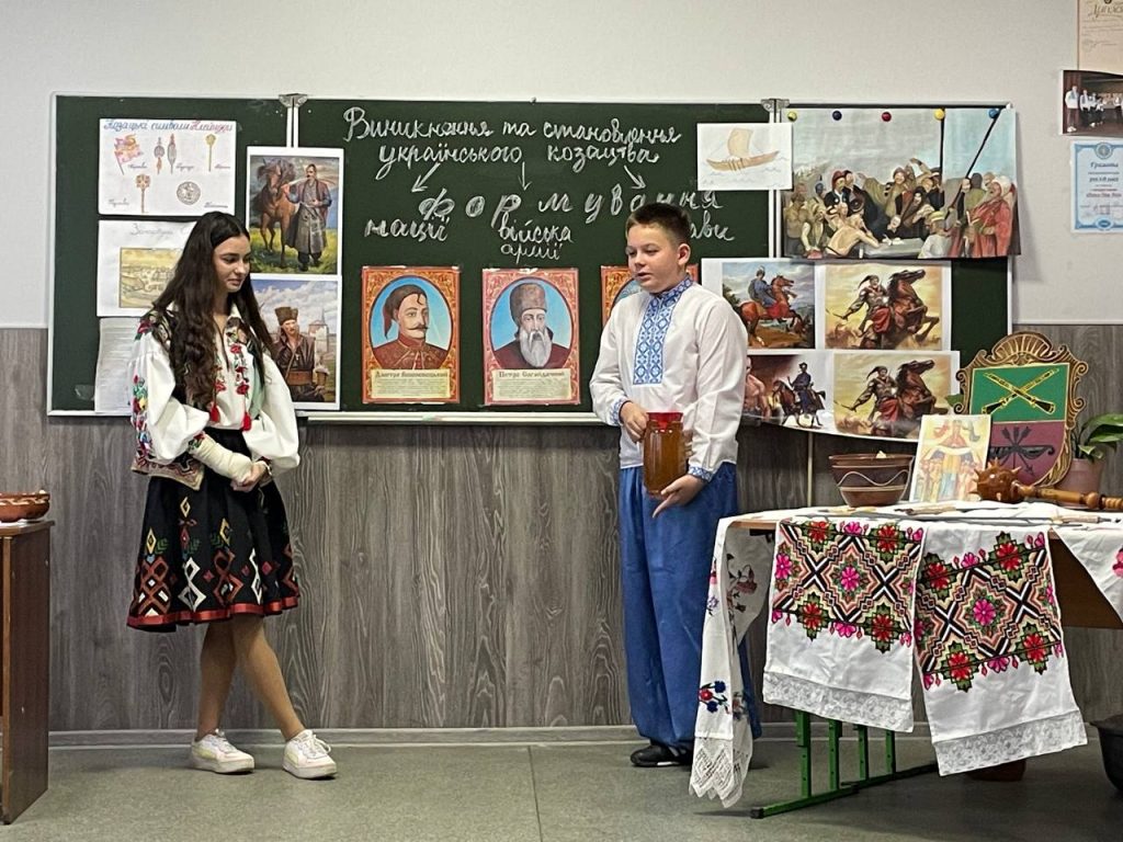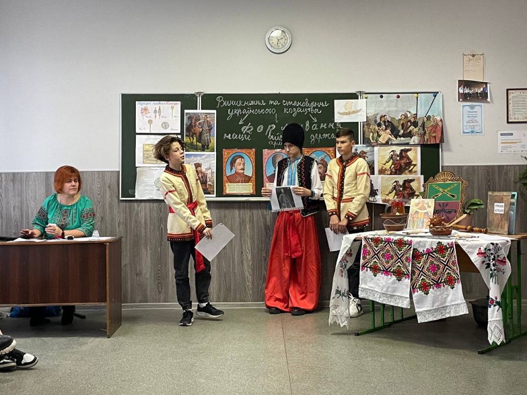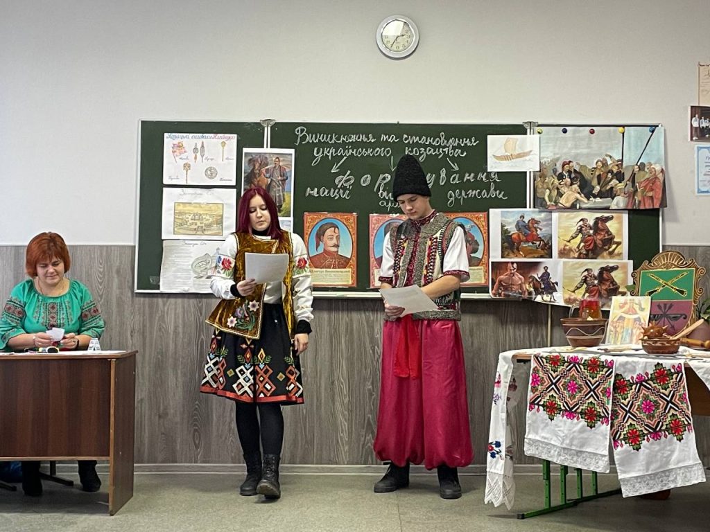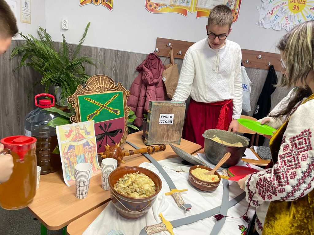 20 листопада учні 8-А класу на уроці історії (вчитель Антоненко О.В.) продемонстрували знання та захоплюючі цікаві факти про звичаї , культуру та військове мистецтво. Козацька пісня, гопак і куліш з узваром були окрасою нашого дійства!