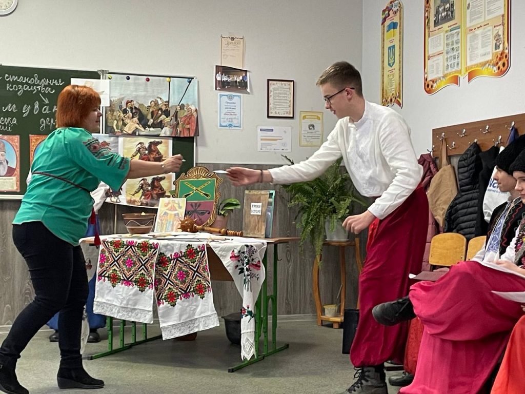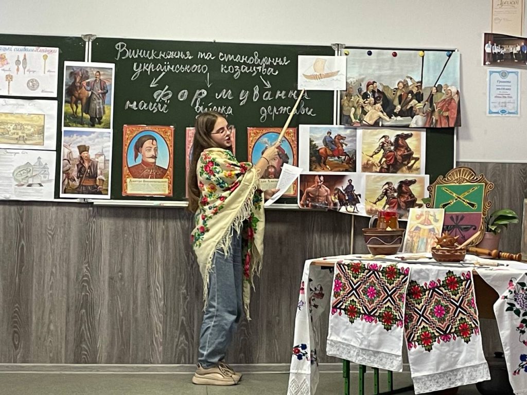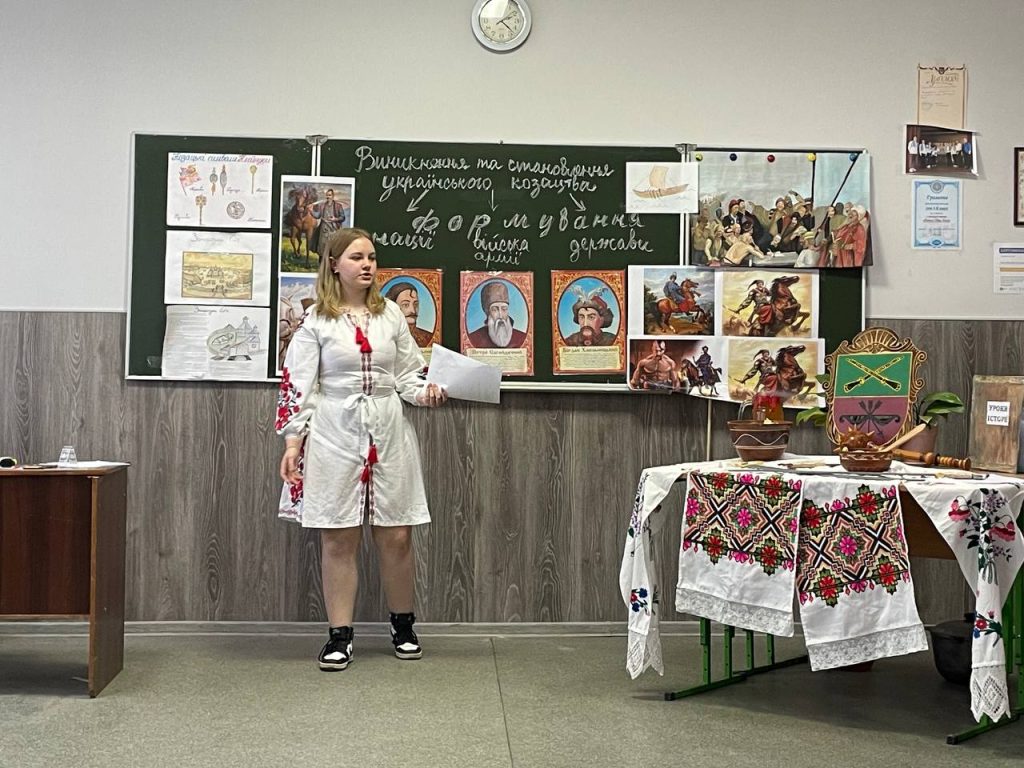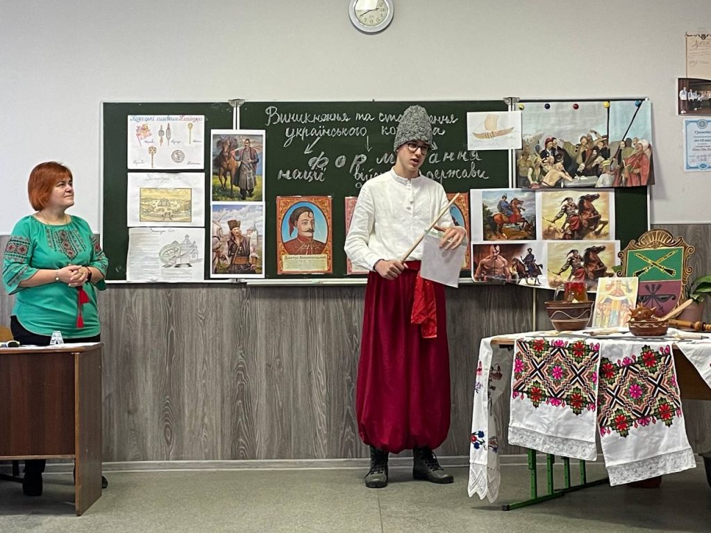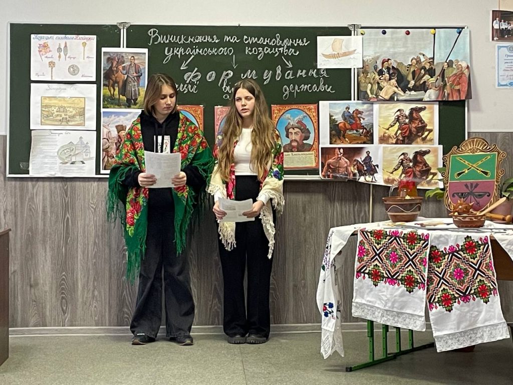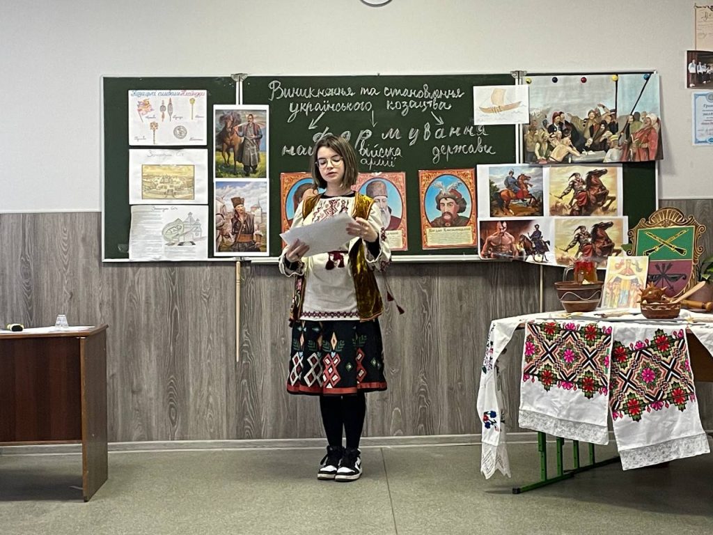 20 листопада учні 8-А класу на уроці історії (вчитель Антоненко О.В.) продемонстрували знання та захоплюючі цікаві факти про звичаї , культуру та військове мистецтво. Козацька пісня, гопак і куліш з узваром були окрасою нашого дійства!