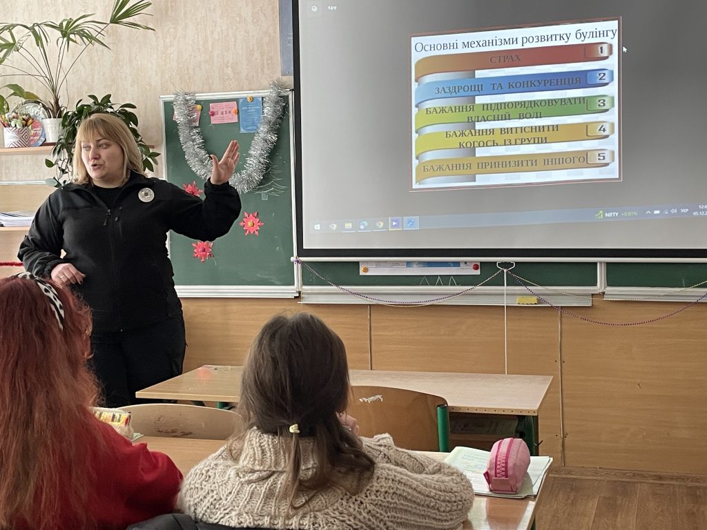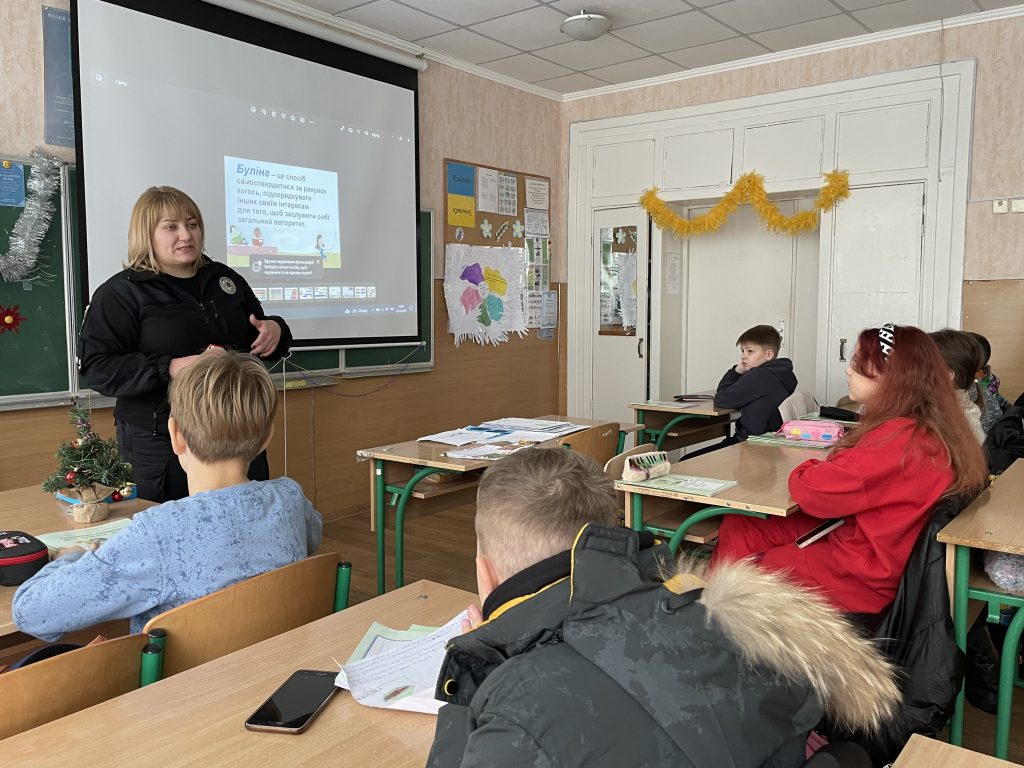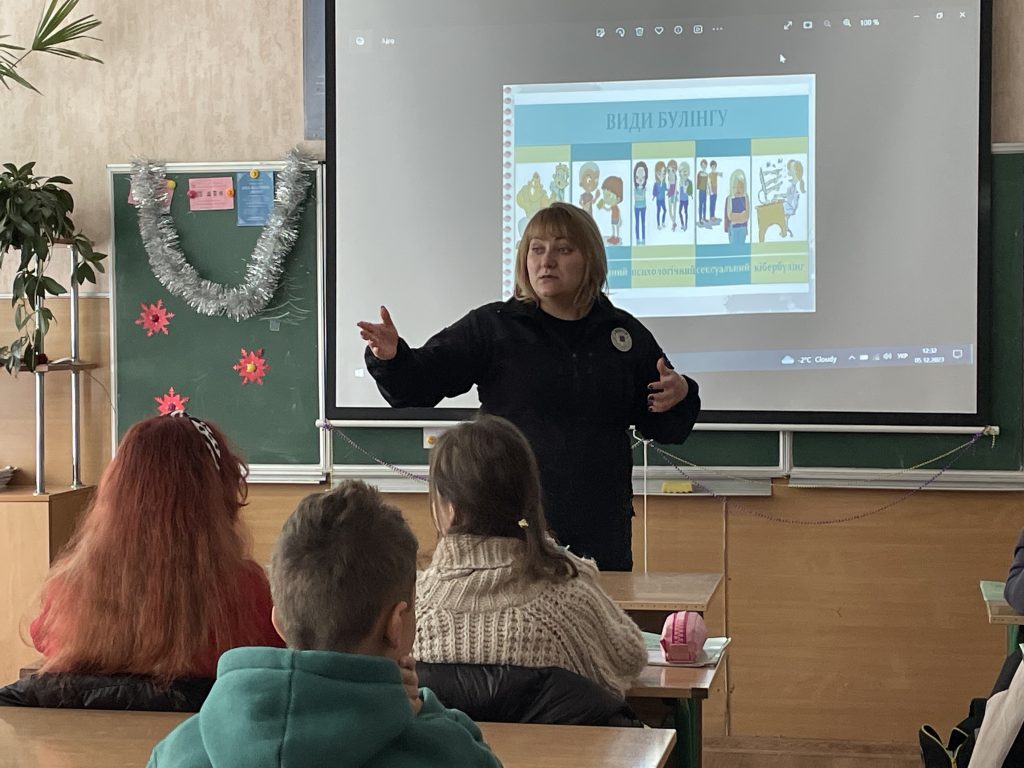 Інспектор поспілкувалась з учнями про найактуальніші проблеми з даної тематики, а також роздала їм буклети про булінг.