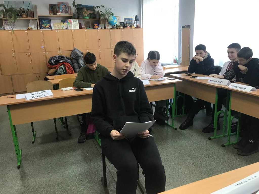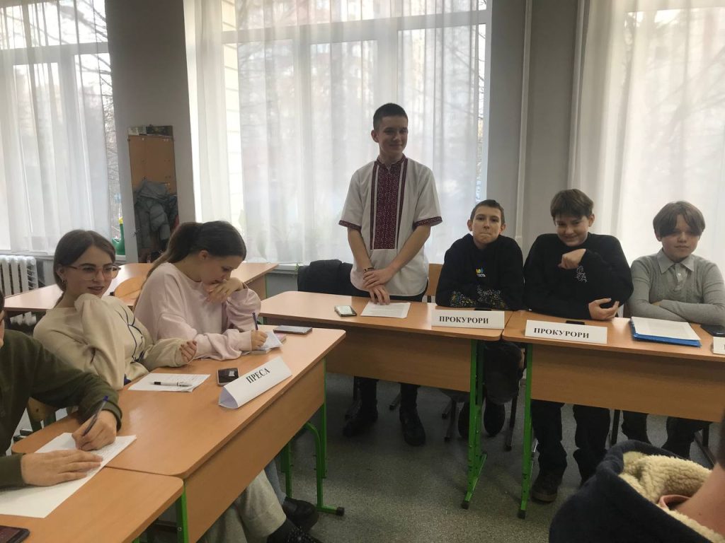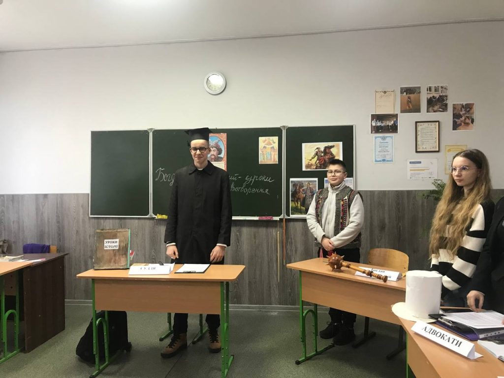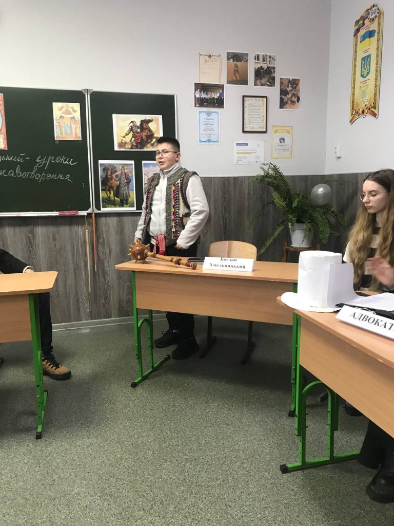 29 січня у 8-А класі був урок рольва гра «Б. Хмельницький – уроки державотворення» Учні високо оцінили успіхи державотворення козацької держави, вказавшина проблеми, зради, переоцінку і досвід боротьби. Діти продемонстрували високу патріотичну позицію і провели паралелі з сьогоденням.