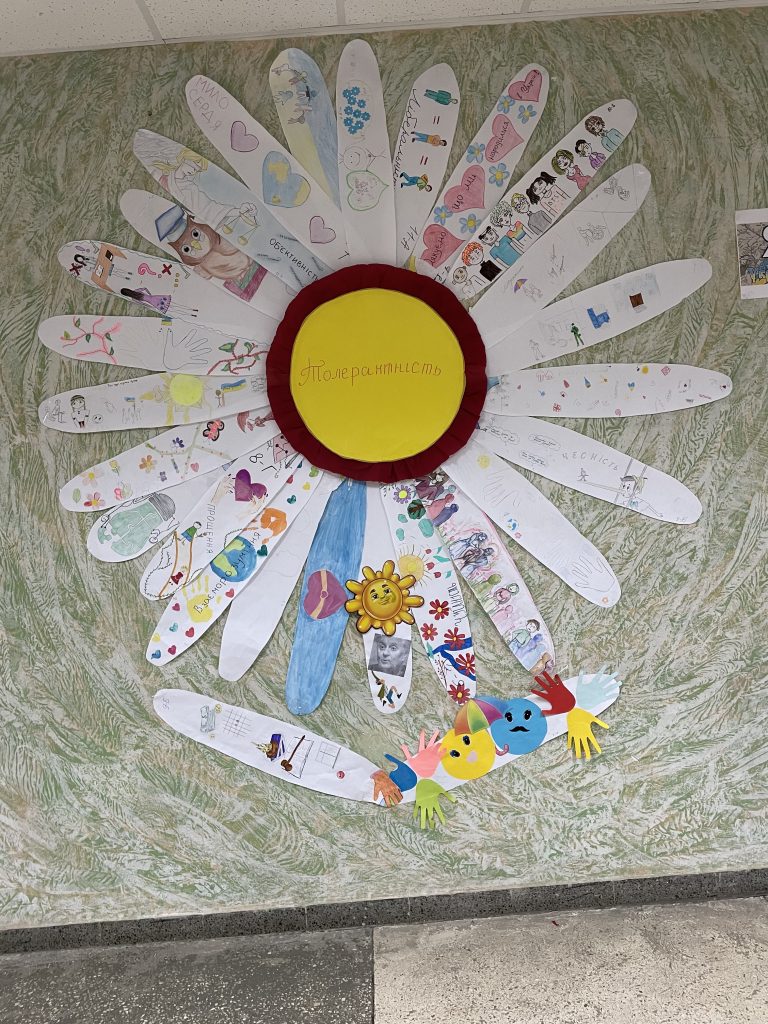 16 листопада наші учні брали участь у флешмобі “Ми – толерантне суспільство”, де кожен клас малював пелюсточку, з якої ми створили квітку толерантності.